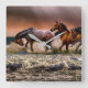 Cuadrado Caballos en una foto oceánica en el reloj del muro