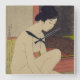 Cuadrado Dama japonesa tras reloj de énfasis en baño