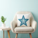 Diseño moderno con una estrella "brillante" azul y blanco sobre un fondo blanco, tu elección de texto en la parte posterior. Tira una almohada con un diseño de personalizable para que puedas personalizar con tu propio texto, imágenes e ideas. Esta es una imagen de arte digital creada con fotografías originales y técnicas digitales e impresa en tela, no brilla ni contiene chispas reales.