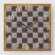 Reloj cuadrado en un fondo del tablero de ajedrez