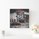 Este reloj personalizado se adorna con nuestra fotografía blanco y negro original de edificios viejos con un camión del vintage con una rueda roja. La imagen era pueblo fantasma admitido de Bodie, en California. Los números y el nombre son rojos. Usted puede cambiar fácilmente el nombre. Un qué regalo maravilloso para un compromiso, un boda, o un aniversario. Todos los derechos reservados © Alan 2017 y Marcia Socolik.