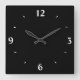 Un reloj negro llano con números blancos grandes. Disponible en forma cuadrada o redonda.