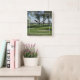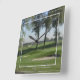 Este reloj con la imagen de un hermoso campo de golf visto a través de una ventana realzará cualquier habitación o pared de oficinas. Fácilmente personalizar con texto o simplemente disfruta de la vista.