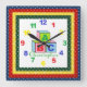 ¡Reloj encantador del reloj w/Numbers A del niño personalizado (de CUALQUIE NOMBRE) perfecto para cualquier cuarto de niños, el dormitorio del niño, la guardería, o aún la sala de clase! La base del reloj se diseña con las rayas (azul, rojo, amarillo, y verde) y los lunares blancos. La cara del reloj, donde usted pondrá el nombre de su niño, ofrece los números intrépidos así como algunos mismos artículos de la hora del recreo de la diversión - un tren, un oso de peluche, algunos bloques huecos de ABC, y una pelota de playa. ¡El nombre añadido será escrito en verde - así que este reloj puede estar para un muchacho O un chica! ¡RECUERDE POR FAVOR añadir el nombre de su niño!