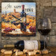 Un reloj mural de diseño artístico con un cuadro paisajístico de inspiración toscana con vino tinto. Hermoso para cualquier amante del vino.