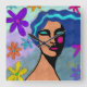 ¡Mi colorida pintura digital abstracta de una mujer y flores hace de este encantador reloj de pared una obra divertida de arte decorativo!