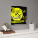 Reloj de pared de cocina retro que dice "Moms Taxi and Drive-thru Grill" en colores negro y amarillo.