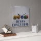 Un texto 3d de color azul metálico "Feliz Navidad" y varios colores adornos de árboles para que tu alegre temporada festiva se marque alegremente.