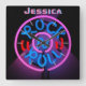 Cuadrado Neon Rock n Roll Chicas de reloj negro rosado Deco