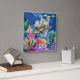 Relajante y divertido reloj con una tortuga verde y peces tropicales en el océano con corales coloridos. Este reloj está diseñado a partir de mi pintura de seda original. ¡Buen regalo para cualquiera!
