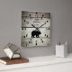 Personalice este diseño rústico de reloj de pared de oso negro con su propio texto. El reloj de pared acrílico se crea en un patrón impreso de tablón gris de madera acentuado con un oso negro de silueta. Se adaptaría especialmente a cualquier cabaña de montaña, refugio de caza o decoración de cavernas. Disponible en sus rostros redondos o cuadrados.