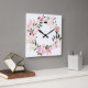 Cuadrado Reloj artístico colorido de pared rosa floral