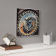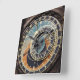 fotografía en azul negro y naranja. fotografía de color detallada de un hito histórico, medieval, un viejo reloj astronómico en praga en europa con signos azules, naranjas y marrones, astrología y números romanos. fotografía en blacks y naranjas.