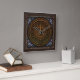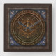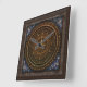 Reloj barroco de madera ornamentado con pájaros, flores y plantas en azul, verde y rosa. El marco es marrón oscuro. El reloj está en el centro del cuadro, tiene un aspecto metalizado de latón y es muy detallado y decorativo con números dorados.