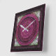 Reloj barroco de madera ornamentado con pájaros, flores y plantas. El reloj está en el centro del cuadro, tiene un aspecto metalizado y está muy cuidado y decorado, con un color de vino con números de latón.