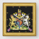 Cuadrado Reloj británico, marco dorado, emblema británico,