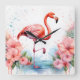 Cuadrado Reloj con flamencos y flores