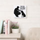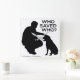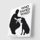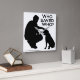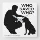 Reloj con imagen de humano y perro con texto, Quién salvó a quién y dos webadreses (siéntase libre personalizar de quitar)