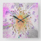 Reloj cuadrado en colores pastel bonito de una fotografía de Rosa salvaje realzada digitalmente.