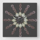Fotografía de una cadena de cobre con cuentas amarillas pálidas. El segmento de cadena se replica de modo que los extremos apunten a los segmentos de reloj de cinco minutos (donde estarían los números). Se puede personalizar el fondo gris de carbón vegetal.