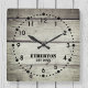Personalice este diseño rústico de reloj de pared con su propio texto. El reloj de pared acrílico se crea en una plancha de madera gris templada, con estampado que encajaría especialmente en cualquier cabaña de montaña, casa de playa o decoración de cavernas. Disponible en sus rostros redondos o cuadrados.