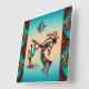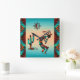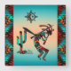 ¡Este es un reloj de pared único "uno de bondad" del suroeste de Kokopelli! Cuenta con un Kokopelli del Suroeste que toca la flauta y baila alrededor de un cactus bajo el sol...sobre un fondo turquesa con fronteras turquesa, Naranja y negra.