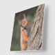Una fotografía muy linda de una ardilla roja subiendo a un árbol.