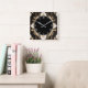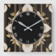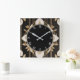 Cuadrado Reloj de Art Decó de Flores Oscuras en blanco y or