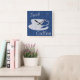 Reloj de café con una pizarra con aspecto de vintage en azul.