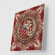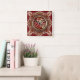 Reloj mural de arte personalizado : Diseño único inspirado en tribus, hojas doradas secas, círculo de patrones en rojos tierra y oro; centrado con la frase 'Bismillah" en caligrafía árabe en el centro, para bendiciones musulmanas diarias en casa o oficina. ¿Como mis diseños y arte? ¡ME ENCANTARÍA verte en mi página de Facebook!
