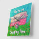 Reloj de camper de color rosa divertido que se puede personalizar para decir lo que se quiere en lugar de "Estamos en tiempo de camping" ¡Añada esto a su camper cuando vaya a glamping!