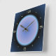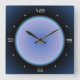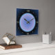 Un bonito círculo lunar de rosa, malva con un borde azul claro. Este reloj cuadrado tiene un fondo azul añil y números crema.