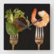 Este reloj para amantes de la comida te va a dar hambre. Un adorno decorativo lindo para tu casa o restaurante. Diseñado a partir de una fotografía original de deliciosas comidas en tenedores Oneida. Sería un regalo de cumpleaños considerado para cualquier chico o chica que le guste cocinar.