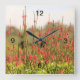 Reloj de flores de jardín de bonito con los números 12, 3, 6 y 9. Las flores son de color rosa caliente y muy alegres. Parecen un jardín de flores silvestres.