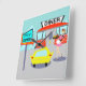 Sirva algo especial con este reloj de Diner Wall de los años 50. El diseño de los dibujos personalizados incluye un edificio de ladrillo rojo con ventanas azules, puertas dobles grises y un cartel blanco que dice "Diner" colgado en el techo. En el estacionamiento, hay una segunda señal en un poste. El cartel tiene un fondo turquesa y una flecha roja que apunta a "Don's Diner". El cartel ha hecho su trabajo porque hay un auto amarillo brillante con las aletas aparcadas al lado. A pesar de que no podemos verlos, los pasajeros del auto deben estar golpeándose los labios. Un monótono y joven carhop está patinando patinaje sobre ruedas en su camino al auto. Su pelo de morena está en una cola de poniente hinchable. Lleva un uniforme corto y rosado con guarnecido negro y delantal blanco. Equilibrado por un lado, el carrito lleva una bandeja negra con una hamburguesa gigante y una refrescante y anticuada botella de refresco. El fondo de la sala está verde azulado de nubes azul claro y de siluetas de cedros.