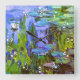 Cuadrado Reloj de los lirios de agua de Monet en azul,