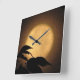 Es otoño, y una luminosa luna llena amarilla dorada se ha levantado detrás de las siluetas negras de hojas soplando en la brisa en este dramático reloj de fotografía de arte fino. El fondo está iluminado en tonos naranja, dorado y marrón para crear un patrón abstracto con un motivo asiático.