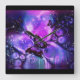 Cuadrado Reloj de mariposa negra y púrpura
