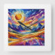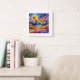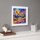 Una "montaña de vidrio manchado" evoca la belleza de una majestuosa cordillera, como si se viera a través de los intrincados y coloridos patrones de una vidriera. Los picos enmarañados se dividen en paneles de tonos vibrantes (azul, púrpura, verde y dorado) que capturan la luz y las estaciones cambiantes. La luz del sol se filtra a través de estos fragmentos de color, creando un resplandor radiante, casi de otro mundo, que resalta los detalles y sombras de la montaña. El efecto es como si todo el paisaje fuera un mosaico, con cada parte representando una parte de la complejidad de la naturaleza, mezclando precisión geométrica con formas orgánicas de roca y cielo.