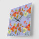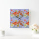 Cuadrado Reloj de Naranja Rojo Amapola Acuarela Pastel Púrp