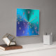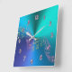 Reloj de notas de la música arcoiris del metal verde azul. Luminoso gradiente de aspecto metalizado en tonalidades frescas de verde azul y lavanda con un equipo ondulado de notas musicales de color arcoiris, rodeado de vidrio como números de lavanda. Un equipo muy amplio con notas musicales de colores añade un toque adicional a este reloj de pared para tu músico o amante de la música favorito.