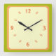 Este diseño de reloj cuadrado presenta un borde verde lima con un centro de limón pálido. Colores complementarios de melocotón para los números. ¡Vea una amplia gama de diseños de relojes coloridos y sencillos de Orientcourt! Agradezco el tiempo dedicado a ver mis diseños de relojes. Jillian