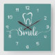 Reloj de decoración moderna de la pared de la oficina de Dentist en un diseño moderno con un símbolo dental y una sonrisa gráfica diseñada con una tipografía gráfica elegante y color de fondo que puede cambiar si lo necesita. Diseñado para una oficina dental para alentar la sonrisa y una actitud positiva.