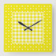 Cuadrado Reloj de pared, control amarillo Gingham y puntos