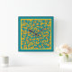 Cuadrado Reloj de pared, mariposas doradas en Verde azulado