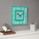 Cuadrado Reloj de pared, patrón geométrico verde esmeralda