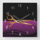 Cuadrado Reloj de peluquería de diseño dorado y violeta