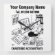 Reloj de pared de los Servicios de contabilidad con el nombre y número de la empresa que elija. Reloj para un contable.