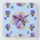 Cuadrado Reloj de punto floral pansy de los paneles azules