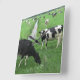 Curiosas vacas fotográficas reloj de pared. Vacas comiendo pasto en un verde paisaje de prado en el reloj de fotos de Holanda y dos vacas curiosas mirándote o al dial para ver qué hora es! ¡Este gran reloj de animales de granja rural es totalmente personalizable! ¡Añade y personaliza con tus imágenes y textos! ¡Un gran regalo de la vaca Frisia Holstein para el fanático de las vacas y los animales de granja!